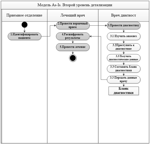 Рис. 2.2. Описание процесса «Провести диагностику», детализация процесса «Составить бланк диагностики»